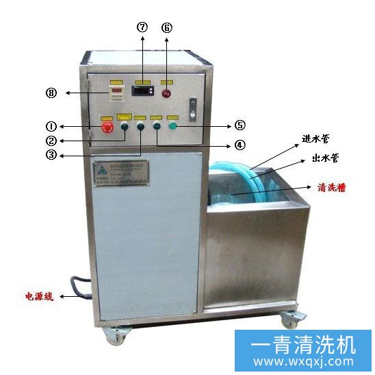 当工业清洗机正常工作时,同时从三个方向启动工业,按下侧超声波启动,工业两侧启动,将电源调节旋钮向右转,按下侧超声波启动。并旋转到适当的功率,此时,狮子座显示显示当前底部超声波功率值。